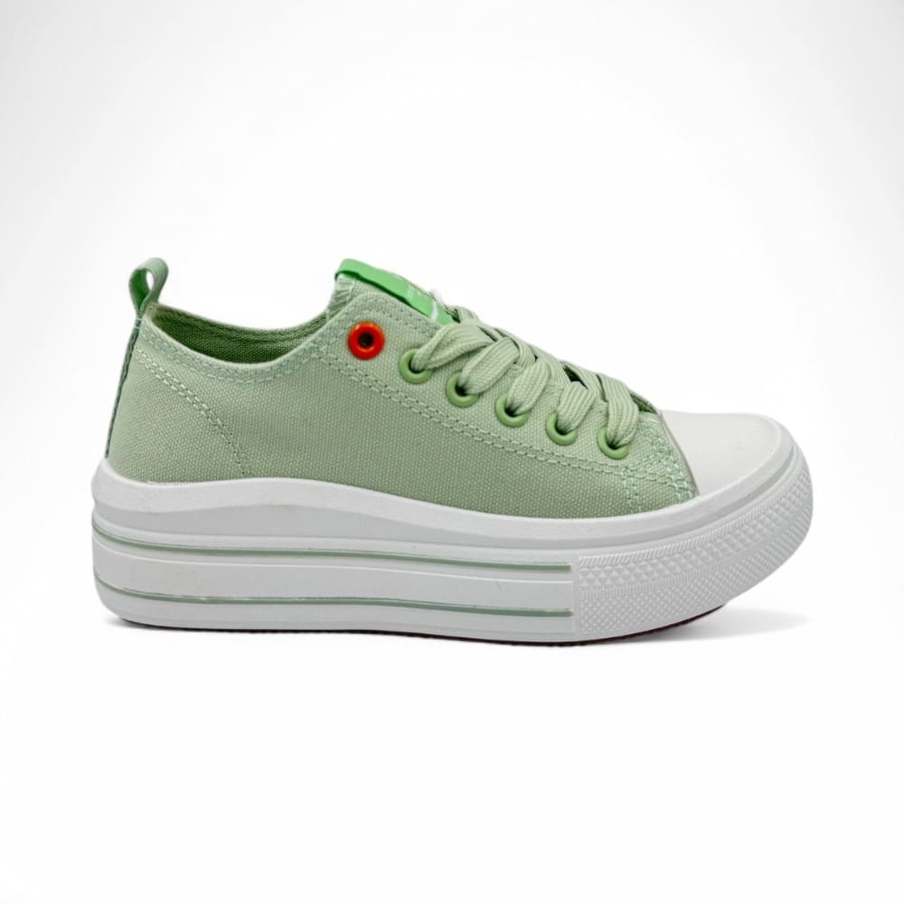Zapatillas deportivas casual, sneakers con cierre de cordones, suela de plataforma, versátiles y combinables, color verde.